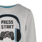 Памучна, комфортна и нежна към кожата, това е блузата Gamer, чийто сив дизайн ще се хареса на децата, обичащи да прекарват следобедите в компанията на компютърните игри. Тя е с дълъг ръкав, а изработката е висококачествена. Натистни старт и нека забавлението започне! Материал: 100% памук Оригинален лицензиран продукт. Поддръжка: За подходящата грижа за този продукт, моля следвайте инструкциите, посочени на етикета.