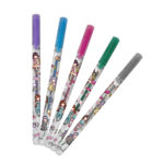 Комплект от 5 гел химикалки от колекцията на Santoro Gorjuss. Kомплектът съдържа 5 на брой различни по цвят гел химикалки. Меко пишещи химикалки. Подходящи са за рисуване и за дълги часове писане. Цветове: лилав зелен розов син сребрист Размер: 8.7 x 1.5 x 19 см.