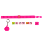 Сет от розова силиконова гривна пиксели Unicorn Pixie Crew, ключодържател и пинче. Дължината на гривната се регулира, за да пасне на китката на всяко дете. Съдържа шест броя мулти пиксели на Unicorn Pixie Crew. Гривната е с регулируема ширина, което дава възможност да пасне на деца от всички възрасти; Ключодържателят от Pixie Crew е с кръгла форма и на него може да се поставя по един от мултипикселите; Пинчето е страхотен аксесоар за всяка ученическа раница. Към него има и метално шипче, което да пробие материята на чантата, както и защитен накрайник, който да предпази от наранявания. * Как работи системата Pixie Crew? Вземете пиксел елемент и го натискате или завъртете върху пинчетата от силиконовия панел. Пикселите остават здраво закопчани и много стабилни, благодарение на системата Pixie-Lock. Откачването (отделянето) им става само в случай на деформация чрез огъване, силна механична интервенция или надраскване на панела. Артикулът е създаден, за да може детето непрекъснато да променя дизайна му.