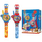 Интелигентни часовници Paw Patrol, радиостанции, сет от два броя. Освен стандартните функции на електронен часовник всяко от устройствата има компас, уоки токита с антена и фенерче. Обхват на радиосигналът – до 200 метра на открито. Комплектът съдържа USB зареждащ кабел за устройствата. Инструкции за употреба. Луксозна подаръчна кутия. Подходящ за близнаци, братя и/или сестри или близки приятели. Оригинален лицензен продукт Paw Patrol, Nickelodeon.