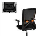 Работен стол Deli с лумбална опора тип пеперуда.Работен стол с висока облегалка с фиксирана еластична лумбална опора тип пеперуда. Tilt заключващ механизъм 90°-125°. Газов механизъм за регулиране на височината на седалката до 10 см. Фиксирани подлакътници с Т-образна форма и метални елементи. Облегалка и седалка, в комбинация черна мрежа и дамаска – дишаща, устойчива на употреба и мръсотия. Удобна седалка от еластична пяна с висока плътност, осигуряваща максимален комфорт и опора за правилно седене. Устойчива PP база, 5-лъчева. Максималко натоварване: 120 кг.
