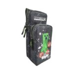 Чанта за геймъри Minecraft Практична чанта с две самостоятелни отделения с ципове за съхраняване и пренасяне на геймъркси аксесоари (контролер, кабели, Nintendo конзола). Чантата може да се носи диагонално пред гърдите и може да служи за носене на портфейл, сандвичи и малка бутилка с вода за еднодневни активности на открито. Преден панел с пикселизиран Creeper и надпис MINECRAFT. Стабилен текстилен регулируем колан със здрава катарама. Размери: височина 26 см., ширина 12 см. и дълбочина от 10 см. Материал: Полиестер