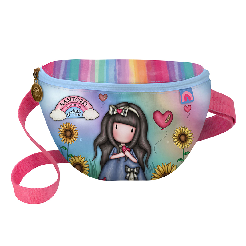 Чудите се къде да сложите вещите си, когато излизате набързо..?! Чантата за кръст Santoro Gorjuss “Be Kind To Yourself ” е перфектното решение, за да може да съберете само най-необходимото – ключове, портмоне, телефон. Изработката е висококачествена и е от 100% полиестер. Чантичката разполага с едно голямо отделение и джоб с цип от задната външна страна. Също така има и регулиращ се колан за кръста за максимално удобство при носене. Оригинален лицензиран продукт.Размери: 22 x 16 x 10 cm