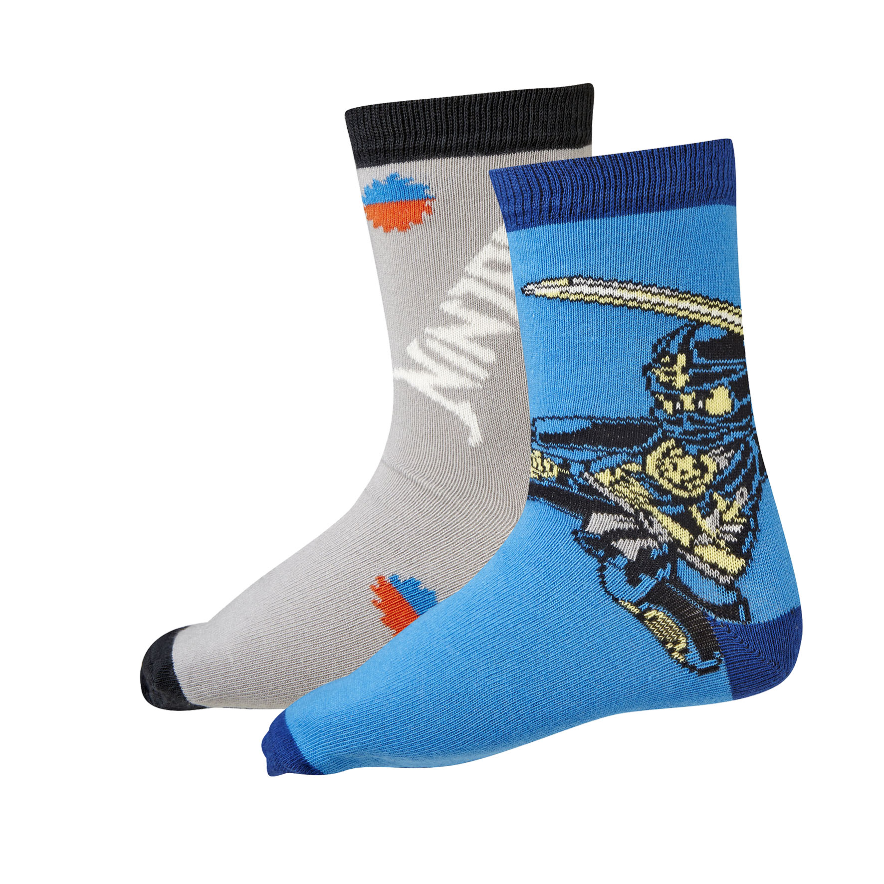 Описание на продукта: – Чорапи LEGO® NINJAGO™ – 2 чифта в пакет – Единият чифт е в сиво и с NINJAGO™ декорация – Другият чифт е в синьо с изображение на нинджа Джей – Не са използвани вредни химикали – Безопасно за деца Състав: 80% памук; 17% полиамид; 3% еластан Поддръжка: За подходящата грижа за този продукт, моля следвайте инструкциите, посочени на етикета. Доверете се на нашите оригинални детски дрехи от които и вие, и децата ви ще останете изключително доволни. Всички дрехи който поръчвате при нас са пакетирани в уникална опаковка – настолна игра, която сме направили за специални поводи. Така не се нуждаете от допълнителни усилия, за да поднесете внимание, уважение, изненада и любов на всяко дете. А децата, продължават да играят и да се забавляват. Пестите време и пари. Печелите удивление и радост. Повече за нашата опаковка тук .