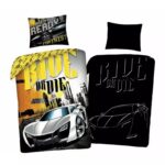 Детски спален комплект Fast & Furious 100% памук. – Оригинални, лицензни продукти – Размери: горна завивка (плик) 140×200см + калъфка за възглавница 70×90см. – Закопчаване на плика със цип. – Опаковка – PVC торба с дръжка Състав: – 100% памук. Изключително меко и приятно детско спално бельо Поддръжка: – Предназначени за пране в перална машина