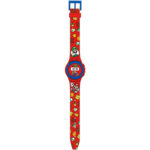 Дигитален часовник от колекцията на Super Mario. Часовникът е с красив, цветен дизайн с принт на Super Mario анимационни герои. Работи с 24-часова функция. Каишката е регулируема и се закопчава с катарама. Размер: 29 x 9.5 см. Инструкции за употреба в опаковката.