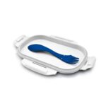 Кутия за храна с прибор 3в1 от колекцията на Real Madrid. Оригинална и практична кутия с едно отделение, така че децата да могат да носят закуските си в парка, на училище или на всеки излет далеч от дома. Капака в здрав, който достатъчно плътно затваря нейното дъно. Кутията включва 3 в 1 прибор (вилица, лъжица и нож). Изработена от устойчив материал, тя ще издържи на случайни падания и неравности при ежедневната употреба. Децата ще се радват да я вземат със себе си. Устойчив материал. Изработена от напълно безвредна пластмаса. Не съдържа BPA! Подходяща за съдомиялна машина, микровълнова фурна и фризер. Размер: 21 x 14 x 6 см