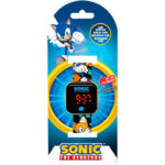LED електронен часовник в дизайна на любимата игра и филм Sonic. Часовниктът показва в червени цифри час, минути и секунди. Работи в 12 и 24 часов режим. В режим на дата часовникът показва ден и месец. Появява се след повторно натискане на бутон. Дисплеят оставя в спящ режим на черен екран докато детето не натисне бутон, за да провери колко е часа. Тогава червени пиксели „заливат“ концентрично дисплея и предшестват визуализиране на часа. След няколко секунди цифрите отново изчезват и дислеят заспива, като на черен фон остава да контрастират принтове на Sonic. Часовникът включва 1 бр. батерия CR2032(3V). Пластмасов гръб. Часовникът не е водоустойчив! Подходящ е за деца над 6 години.