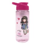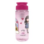 Пластмасова бутилка Santoro Gorjuss Be Kind To Yourself от колекцията Gorjuss Be Kind на Santoro London. Пластмасова прозрачна бутилка в красив розов цвят, върху която е изобразено Gorjuss момиче с тъмно кестеняви коси и синя рокля с панделка, а в ръцете си държи малко сърце, около него има слънчогледи и летящи балони във формата на сърце. Капачката на бутилката е на винт и разполага с гумено уплътнение. Върху нея има удобен отвор за пиене, който се затваря с клипс и не позволява разливането на вода. Също така има дръжка за по-удобно носене. Не е предназначена за съдомиялна машина, микровълнова печка и фризер! Вместимост: 500 млРазмер: 21 x 6.8 x 6.8 смМатериал: пластмаса