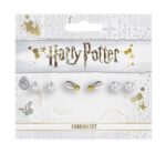 Комплектът съдържа три чифта обеци символизиращи три от най-разпознаваемите предмета в магичния свят на Harry Potter. Единият чифт обеци е във формата на „Златния снич“, най-важната топка в Куидича и пазител на „Камъка на Възкресението“. Вторият чифт обеци е във формата на даровете на Смъртта – трите най-силни предмета в магьосническия свят: „Бъзовата пръчка“, „Мантията Невидимка“ и „Камъкът на възкресението“. Третият чифт обеци символизира емблемата на магьосническия перон 9 ¾ на гара „Кинг крос“. Официално лицензиран продукт изработен под ръководството на Warner Bros. Размери: 1 x 1 x 1 cm