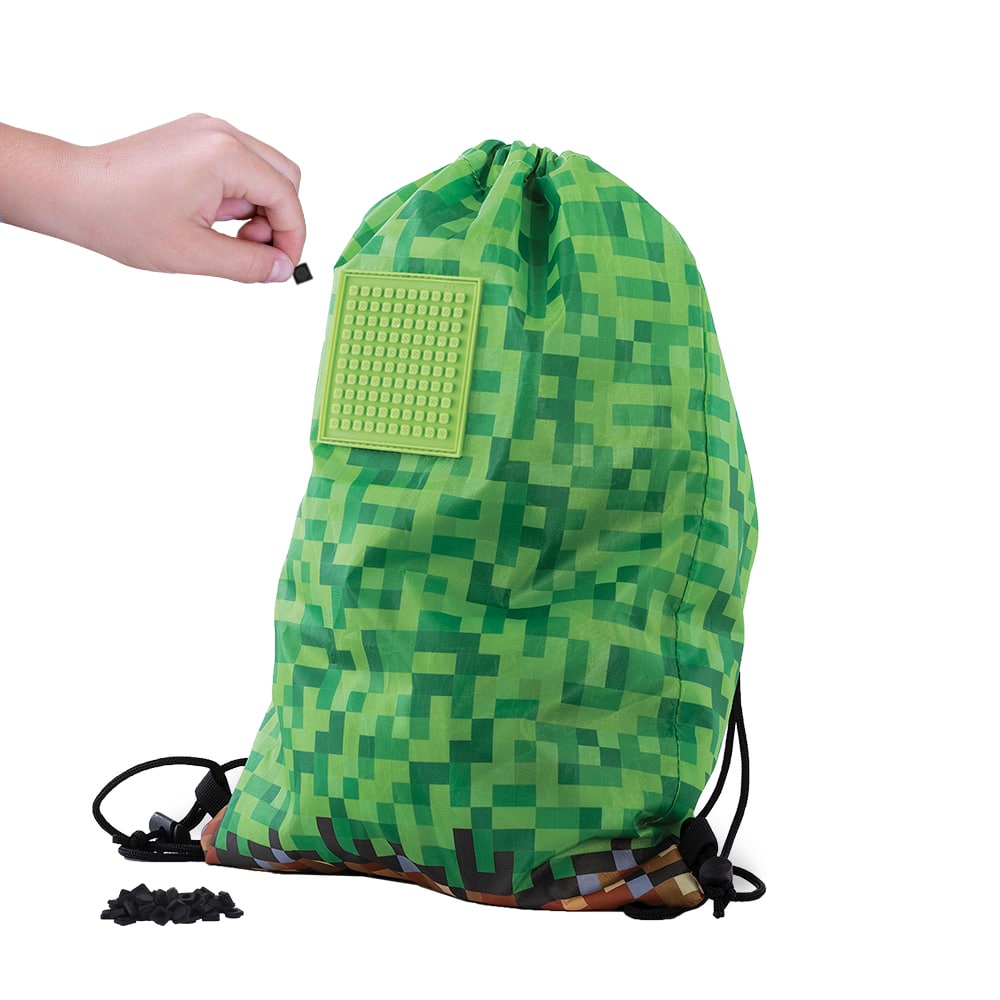 Интересната спортна торба е от марката Pixie Crew, което означава, че крие и някои изненади – в предната си част има силиконов панел, на който се редят пиксели и се създават картини. В комплекта има пликче с черни пиксели. Във вътрешната част на торбата има джобче, а затварянето е посредством връзки, които се използват и за презрамки. Размери: 43 x 32 x 1 см; Вместимост: 8 л. * Как работи системата Pixie Crew? Вземете пиксел елемент и го натискате или завъртете върху пинчетата от силиконовия панел. Пикселите остават здраво закопчани и много стабилни, благодарение на системата Pixie-Lock. Откачването (отделянето) им става само в случай на деформация чрез огъване, силна механична интервенция или надраскване на панела. Артикулът е създаден, за да може детето непрекъснато да променя дизайна му.