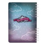 Тефтер със спирала Santoro Gorjuss – Little Storm Cloud от колекцията Whatever the Weather. Тефтерът има твърди корици, илюстрирани в приказният дизайн на Gorjuss Little Storm Cloud, в нежни виолетово-сини нюанси и 192 страници с широки редове, подвързани с двойна спирала. На предната корица има детайли със сребристо фолио. Размери: 16 x 21 x 2.2 см Материал: Хартия и картон