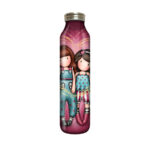 Термо бутилка за вода от колекцията на Santoro Gorjuss. Метална изолирана бутилка от неръждаема стомана. Вместимостта на термо бутилката е 0.600мл. Бутилката е в тъмно розов цвят. Върху нея има принт на две Gorjuss момичета с кафяви коси. Предлага се в подаръчна картонена кутия. Преди употреба, прочетете внимателно интрукциите: Измийте всички части на бутилката под течаща вода след всяка употреба. Не се препоръчва използването на микровълнова фурна и дълбок фризер. Не е подходяща за съхранение на бебешки храни и алкохолни напитки. Размер: 6.5 x 6.5 x 26 см.