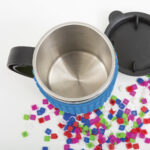 Качествена термо чаша Pixie Crew с обем 400 мл, изработена от неръждаема стомана, а практичният капак ще запази температурата на напитката за по-дълго време. Обвивката ѝ е от светещ в тъмното силиконов панел, върху който децата да сглобяват стоте разноцветни пиксели. Дръжката е удобна и е подходяща за малки и големи. Чашата може да се мие в съдомиялна машина, но е препоръчително да премахнете силиконовия панел и пикселите преди миене. Вместимост: 400 мл Размери: 7,5 х 11 см * Как работи системата Pixie Crew? Вземете пиксел елемент и го натискате или завъртете върху пинчетата от силиконовия панел. Пикселите остават здраво закопчани и много стабилни, благодарение на системата Pixie-Lock. Откачването (отделянето) им става само в случай на деформация чрез огъване, силна механична интервенция или надраскване на панела. Артикулът е създаден, за да може детето непрекъснато да променя дизайна му.