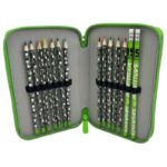 Страхотен ученически двоен несесер – допълнение към раница Minecraft.Съставен от два сегмента, обкантени с красиви шевове. Удобно вътре се носят моливи и химикали, гумичка, острилка, линия и тефтер. Несесерът се предлага със следното съдържание: – 12 бр. разноцветни молива; – 2 бр. черен молив с гумичка; – 1 тефтер със страници без редове – 2 бр. сини химикалки; – 1 бр. гумичка; – 1 бр. острилка; – 1 бр. Линия – 15 см; Размери: 19.5 x 12 x 6 см.