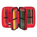 Страхотен ученически троен несесер, чудесно допълнение към ученическата раница Super Mario Mariokart Red. Съставен от три сегмента, обкантени с красиви шевове. Удобно вътре се носят моливи и химикали, флумастери, гумичка, острилка, триъгълник и линия. Несесерът се предлага със следното съдържание: 18 бр. разноцветни флумастера; 18 бр. разноцветни молива; 1 бр. черен графитен молив HB; 1 бр. червен триещ се химикал; 1 бр. син триещ се химикал; 1 бр. гумичка; 1 бр. острилка за 2 размера моливи; 1 бр. линия; 1 бр. триъгълник; 1 бр. ножичка; 1 пакетче с 5 бр. етикети за учебници и тетрадки. Размери: височина – 20 cm, ширина – 13 cm и дълбочина – 7 cm Уникален преден панел с голям принт на Super Mario. Всички отделения се отварят и затварят с черни метални ципове с червени текстилни накрайници.